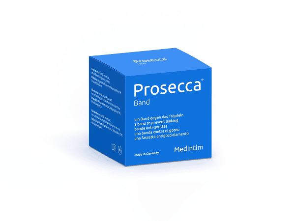 Prosecca® bestaat uit een siliconen band met een drukkussentje en een klittenbandsluiting. Het drukkussentje drukt tegen de urinebuis waardoor ongewenst urineverlies wordt voorkomen. Het bandje is 25mm breed en circa 280mm lang.